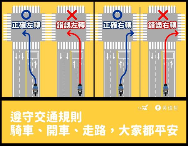 一、如路口有機車兩段式左轉標誌,機車仍須依兩段式左轉規定左轉