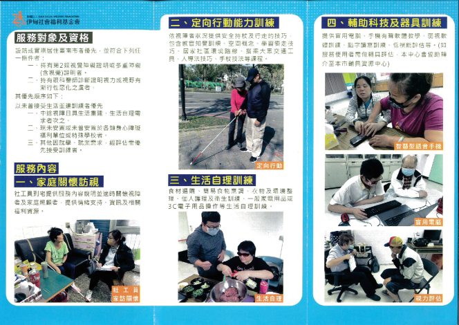 115年度臺南市視覺障礙者生活重建服務,提供視覺障礙者定向行動、生活自理、資訊溝通及社會支持等專業服務。
