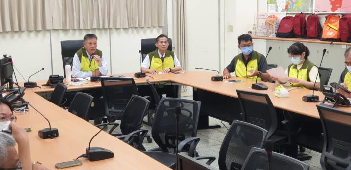 新營區災害應變中心邀集災害應變中心各組召開整備工作會議,會議中陳宏田區長責請各組務必提高警戒,完成各項整備,加強災修物資、機具、人力整備,隨時待命,密切注意水庫蓄水洩洪概況及急水溪水位,請各單位人員手機應全面保持暢通,以利臨時應變之需,另請同仁在勘查災情時亦要注意自身安全。
