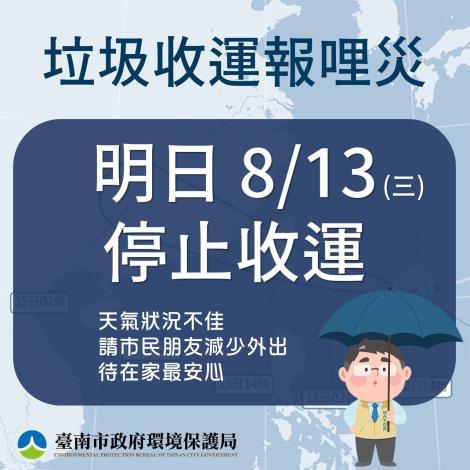 明日8/13垃圾亦停止收運。